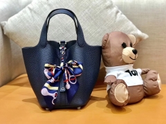 Hermès(爱马仕)Picotin 菜篮包 午夜蓝 Togo牛皮 蜡线手缝 银扣 18cm