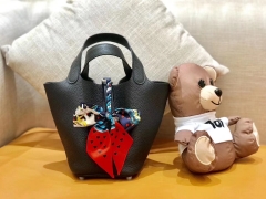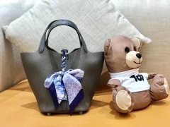 Hermès(爱马仕)Picotin 菜篮包 斑鸠灰 Togo牛皮 蜡线手缝 银扣 18cm