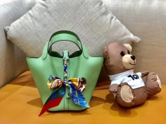 Hermès(爱马仕)Picotin 菜篮包 牛油果绿 Togo牛皮 蜡线手缝 银扣 18cm
