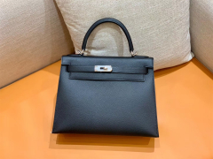 Hermès(爱马仕)Kelly 凯莉包 掌纹牛皮 经典黑 银扣 28cm 全手工 现货