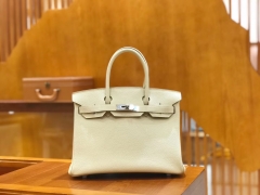 Hermès(爱马仕)Birkin 30cm 奶昔白 Togo小牛皮 银扣 原版蜜蜡线 顶级手工缝制