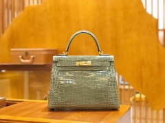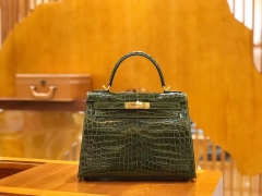 Hermès(爱马仕)Kelly 28cm 橄榄绿 一级尼罗鳄 金扣 原版蜜蜡线 顶级手缝