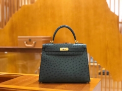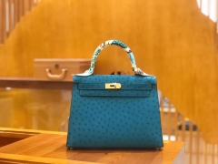 Hermès(爱马仕)kelly 28cm 孔雀蓝 进口kk鸵鸟皮 蜡线 全手工缝制