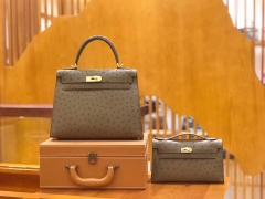 Hermès(爱马仕)Kelly 28cm 摩卡 南非KK鸵鸟皮 金扣 原版蜜蜡线 顶级手缝