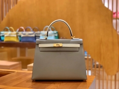 Hermès(爱马仕)Kelly 28cm 掌纹牛皮 大象灰拼金棕色 全手工缝制
