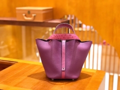 Hermès(爱马仕)Picotin 18cm 鸢尾紫 海葵紫 Togo牛皮拼鸵鸟皮 银扣 全手工缝制 现货供应