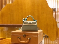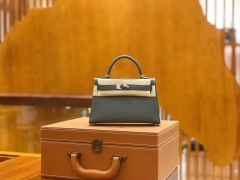Hermès(爱马仕)Mini kelly 二代 杏仁绿 Epsom 掌纹小牛皮 银扣 原版蜜蜡线 顶级手缝