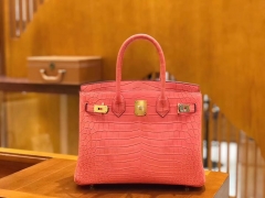 Hermès(爱马仕)Birkin 30cm 龙虾粉 杜鹃粉 尼罗鳄鱼皮 金扣 原版蜜蜡线 顶级手缝 现货