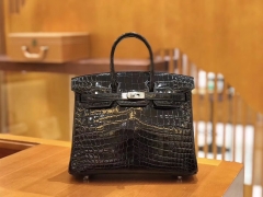 Hermès(爱马仕)Birkin 25cm 经典黑 尼罗鳄鱼皮 银扣 原版蜜蜡线 顶级手缝 现货