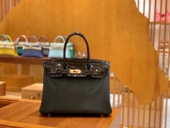 Hermès(爱马仕)Birkin 30cm Touch 松柏绿 鳄鱼皮拼牛皮 全手工缝制