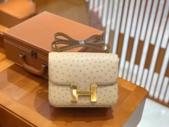 Hermès(爱马仕)康斯坦 24cm 杏色 南非KK鸵鸟皮 金扣 原版蜜蜡线 顶级手缝