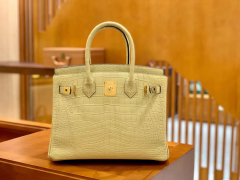 Hermès(爱马仕)Birkin 30cm 雾面 尼罗鳄鱼皮 奶昔黄 金扣 全手工缝制
