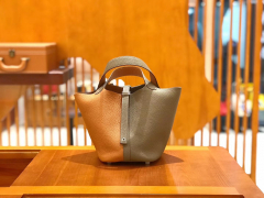 Hermès(爱马仕)Piction 18cm 大象灰拼金棕色 银扣 Togo小牛皮 全手工缝制