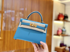Hermès(爱马仕)Mini kelly 迷你凯莉 新增现货 北方蓝 掌纹小牛皮 臻品级别 金扣 19cm