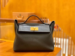 Hermès(爱马仕)Kelly-2424 黑色 原厂御用顶级小牛皮拼鳄鱼皮 togo 金扣 29cm