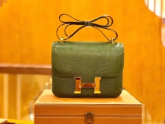 Hermès(爱马仕)Constance 竹子绿 南非野生蜥蜴皮 金扣 24cm 原版蜜蜡线 顶级手工