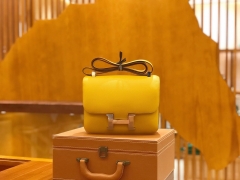 Hermès(爱马仕)Constance 24cm 琥珀黄 Epsom 掌纹小牛皮 银扣 原版蜜蜡线 顶级手缝