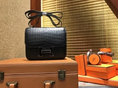 品牌:Hermès(爱马仕);类别:Constance 空姐包;颜色:黑珐琅扣;材质:一级尼罗雾面 鳄鱼皮;等级:顶级;附件:全套包装礼盒;尺寸:18cm;功能:单肩背包