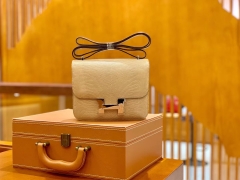 Hermès(爱马仕)Constance 空姐包 杏色 野生蜥蜴 臻品级别 银扣 18cm