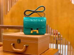 Hermès(爱马仕)Constance 18cm 维罗纳绿 金扣 美洲亮面 鳄鱼皮 全手工缝制