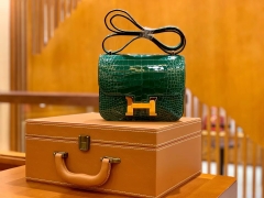Hermès(爱马仕)Constance 18cm 宝石绿 金扣 美洲亮面 鳄鱼皮 全手工缝制