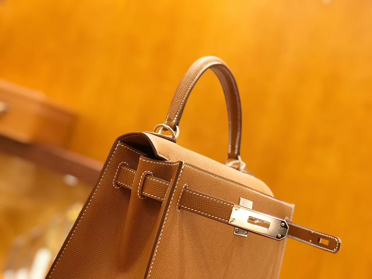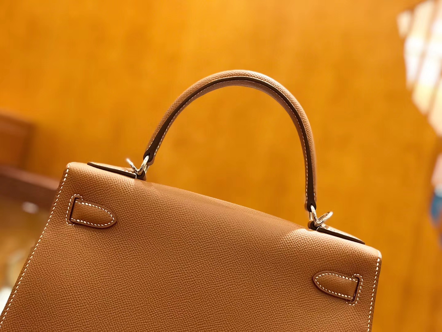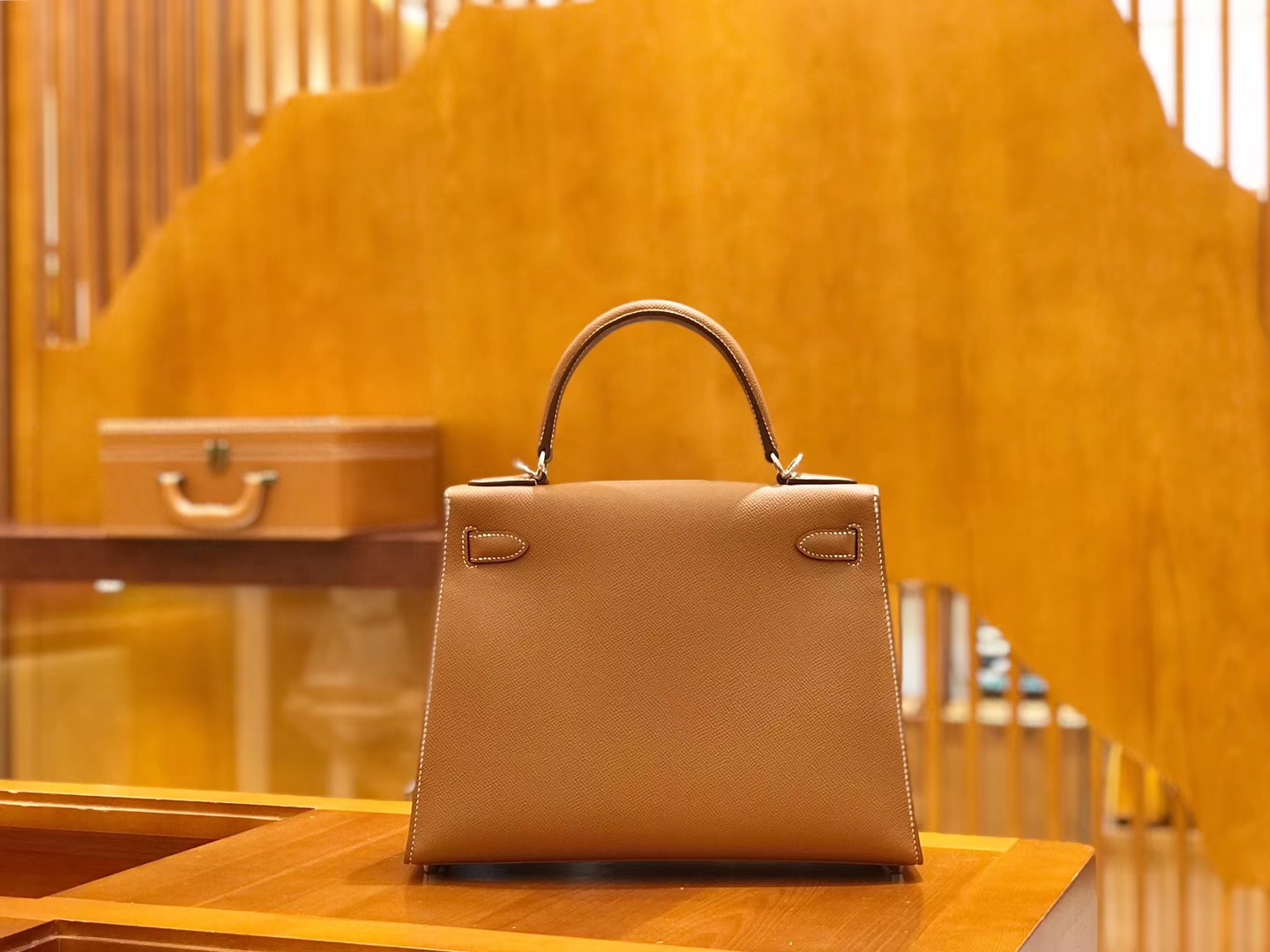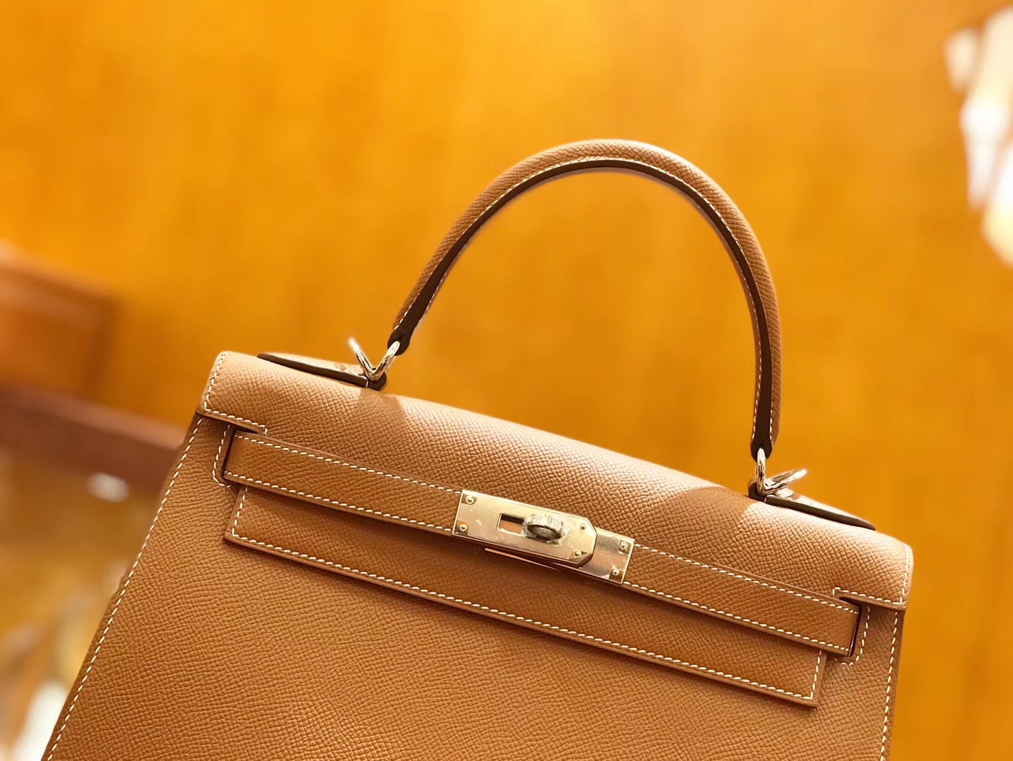 Hermès(爱马仕)Kelly 28cm 金棕色 银扣 掌纹牛皮 全手工缝制 现货