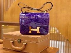 Hermès(爱马仕)Constance 23cm 梦幻紫 野生湾鳄 金扣 原版蜜蜡线 顶级手缝 现货