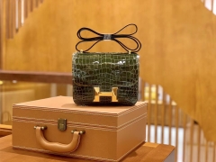 Hermès(爱马仕)Constance 18cm 橄榄绿 尼罗鳄鱼皮 金扣 原版蜜蜡线 顶级手缝