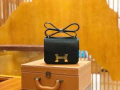 Hermès(爱马仕)康斯坦 18cm 经典黑 Box 牛皮 金扣 原版蜜蜡线 顶级手缝