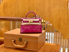 Hermès(爱马仕)Mini Kelly 19cm 二代 一级美洲鳄鱼皮 J5天方夜谭紫 高定工序版本 全手工缝制
