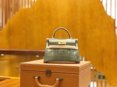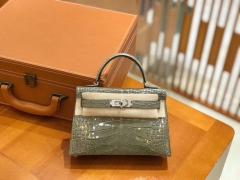 Hermès(爱马仕)Mini Kelly 二代 19cm 一级美洲鳄鱼皮 81斑鸠灰 银扣 高定工序版本 全手工缝制