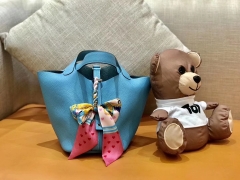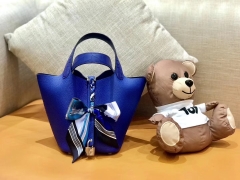 Hermès(爱马仕)Picotin 菜篮包 北方蓝 Togo牛皮 蜡线手缝 银扣 22cm