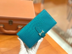 Hermès(爱马仕)Bearn 长夹 孔雀蓝 一级美洲鳄鱼皮 银扣 原版蜜蜡线 顶级手工