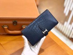 Hermès(爱马仕)Bearn 长夹 午夜蓝 一级美洲鳄鱼皮 银扣 原版蜜蜡线 顶级手工