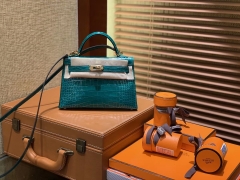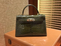 Hermès(爱马仕)Mini kelly 19cm 一级美洲鳄鱼皮 松柏绿 金扣 原版蜜蜡线 顶级手工