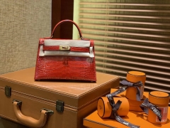 Hermès(爱马仕)Mini kelly 19cm 一级美洲鳄鱼皮 中国红 金扣 原版蜜蜡线 顶级手工
