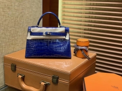 Hermès(爱马仕)Mini kelly 19cm 一级美洲鳄鱼皮 电光蓝 银扣 原版蜜蜡线 顶级手工