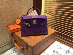Hermès(爱马仕)Mini kelly 19cm 一级美洲鳄鱼皮 水晶紫 金扣 原版蜜蜡线 顶级手工