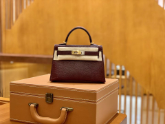 Hermès(爱马仕)Kelly 凯莉包 掌纹牛皮 米黄色拼金棕色 金扣 25cm