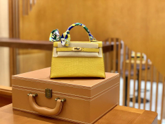 Hermès(爱马仕)迷你2代 19cm 琥珀黄 金扣 美洲雾面 鳄鱼皮 全手工缝制