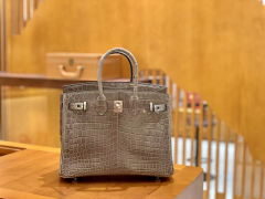 Hermès(爱马仕)Birkin 25cm 尼罗鳄鱼皮 斑鸠灰 银扣 全手工缝制