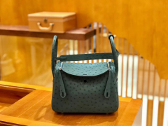 Hermès(爱马仕)Lindy 26cm 松柏绿 靛蓝 银扣 鸵鸟皮 全手工缝制