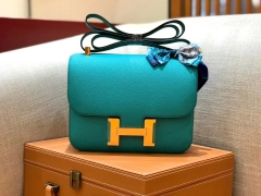 Hermès(爱马仕)康斯坦 Constance 空姐包 孔雀绿 德国进口牛皮 全手工缝制 金扣 24cm