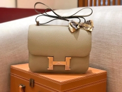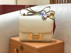 Hermès(爱马仕)康斯坦 Constance 空姐包 奶昔白 德国进口牛皮 全手工缝制 金扣 24cm