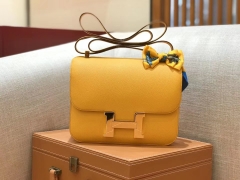 Hermès(爱马仕)康斯坦 Constance 空姐包 琥珀黄 德国进口牛皮 全手工缝制 银扣 24cm