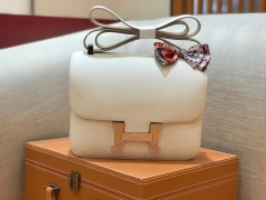 Hermès(爱马仕)康斯坦 Constance 空姐包 奶昔白 德国进口牛皮 全手工缝制 银扣 24cm