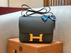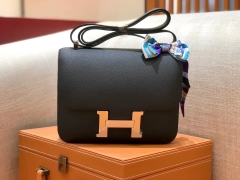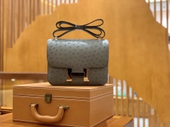 Hermès(爱马仕)Constance 空姐包 沥青灰 南非进口鸵鸟皮 24cm 现货