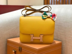 Hermès(爱马仕)康斯坦 Constance 空姐包 太阳黄 德国进口牛皮 全手工缝制 金扣 24cm