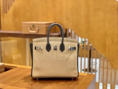 Hermès(爱马仕)Birkin 铂金包 锡器灰拼杏色 南非野生蜥蜴皮 银扣 25cm