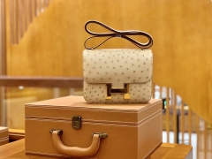Hermès(爱马仕)Constance 空姐包 杏色 南非进口鸵鸟皮 18cm